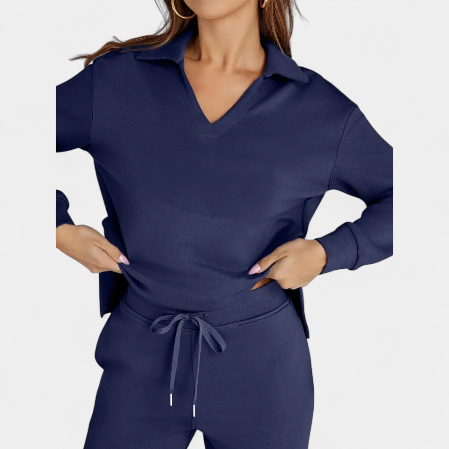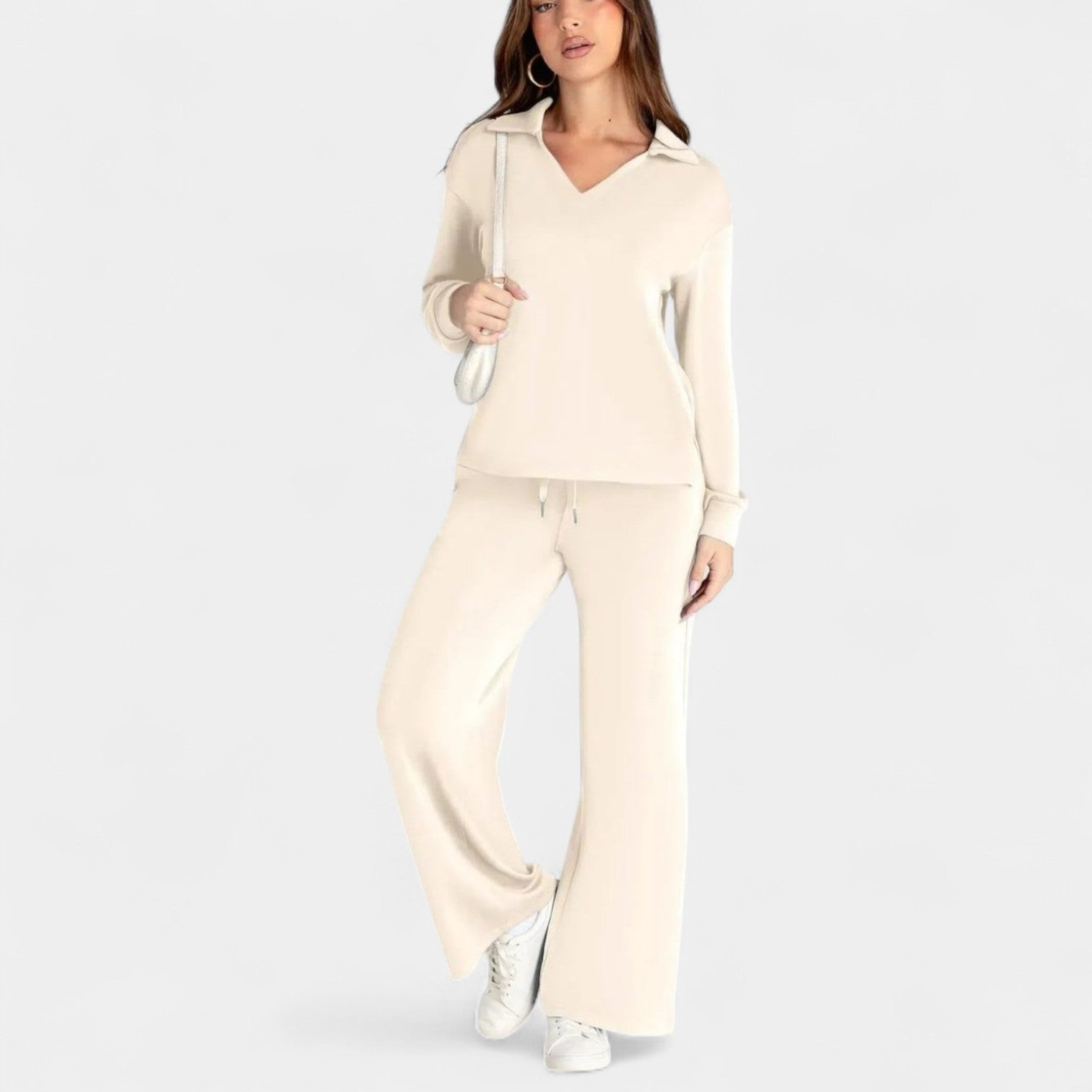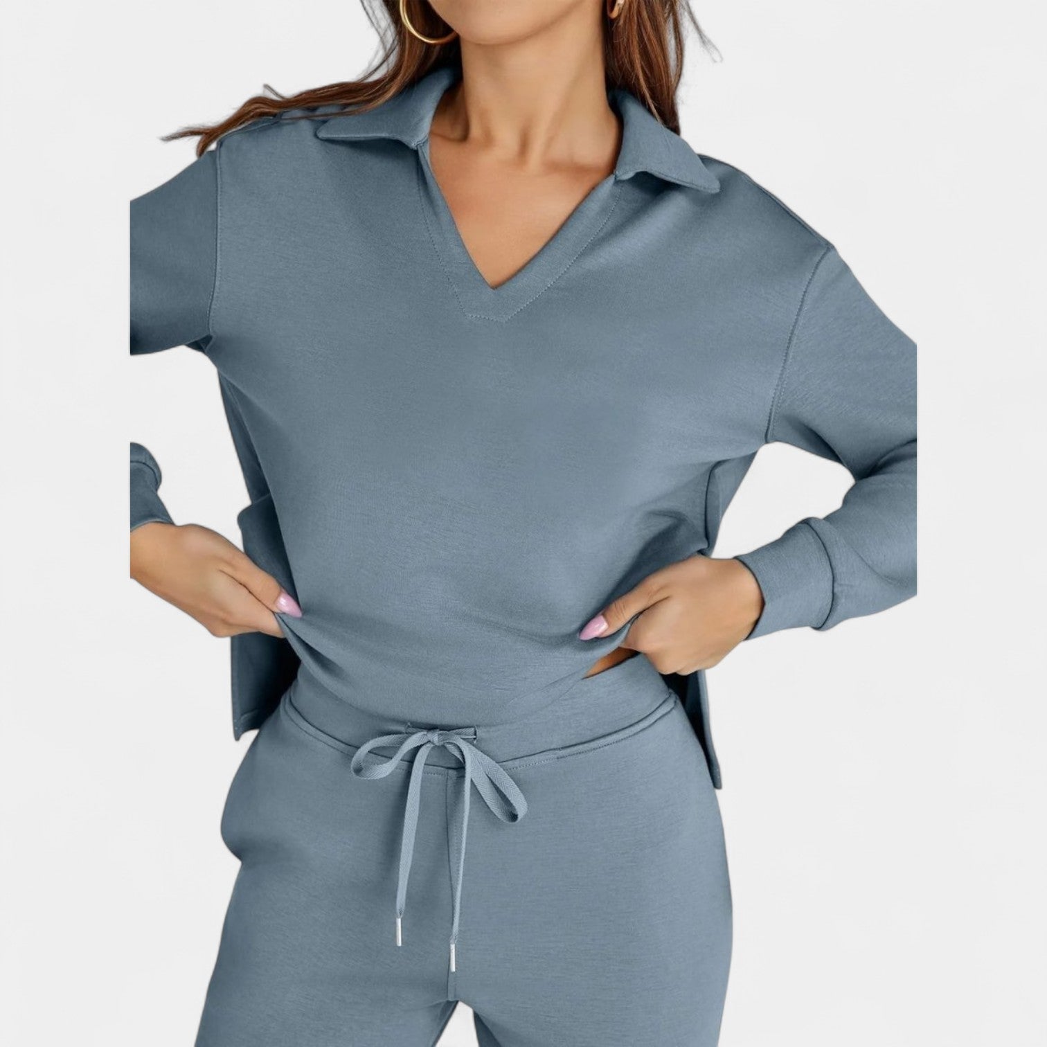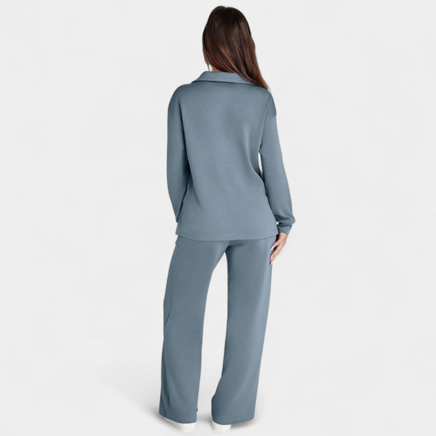 Set Jitka spojuje styl a komfort do dokonale sladěné dvoudílné soupravy. Je lehký, všestranný a navržený tak, aby ti dodal sebevědomí – ať už jsi na cestách, na kávě s přáteli nebo si užíváš klidný den doma.