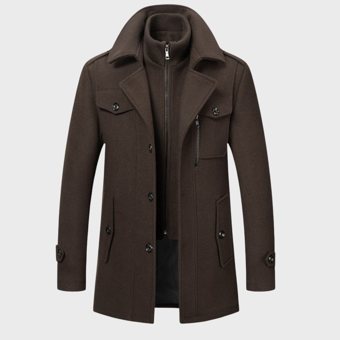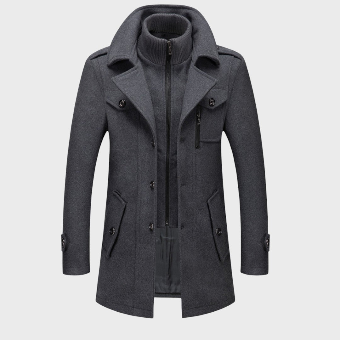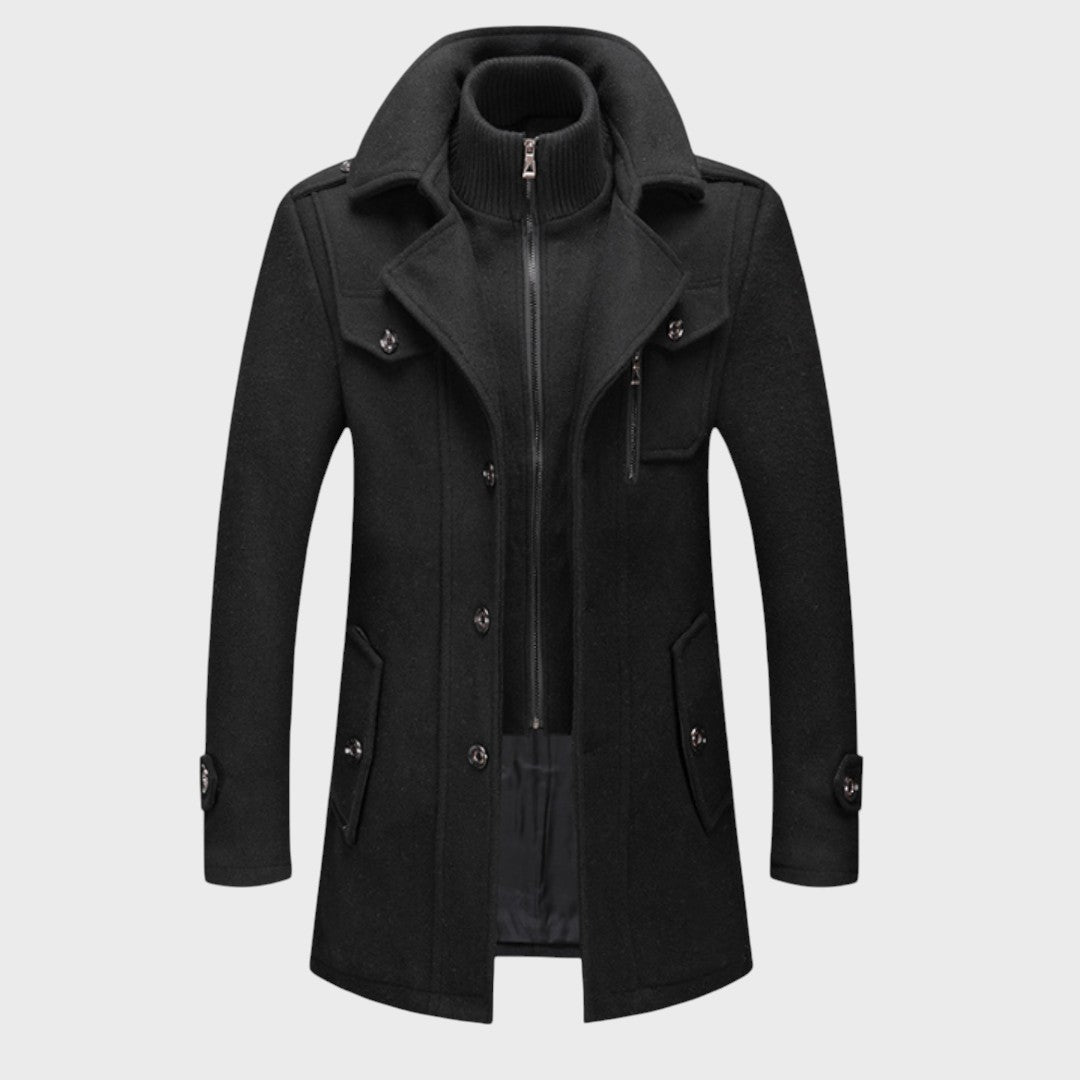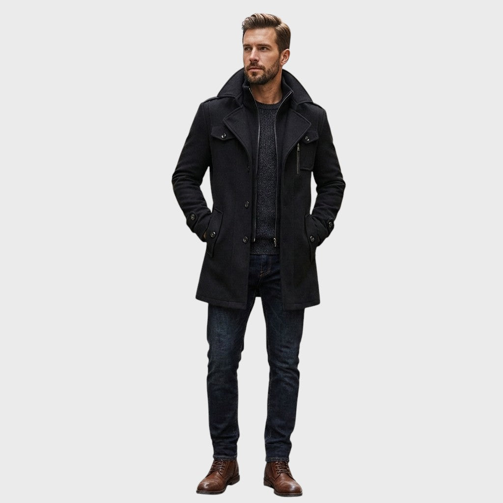 Chtěli jste někdy vstoupit do místnosti a okamžitě vzbudit respekt? Kabát Thomas je inspirován ikonickým stylem britských gentlemanů, který kombinuje drsnou eleganci s nekompromisní třídou. Tento model není jen o vzhledu – je navržen do chladných ulic. Díky unikátnímu dvojitému límci získáte extra vrstvu tepla, která vás ochrání před větrem, aniž byste museli nosit šálu. Perfektně střižená ramena a elegantní linie zad zajistí, že budete vypadat skvěle z každého úhlu.