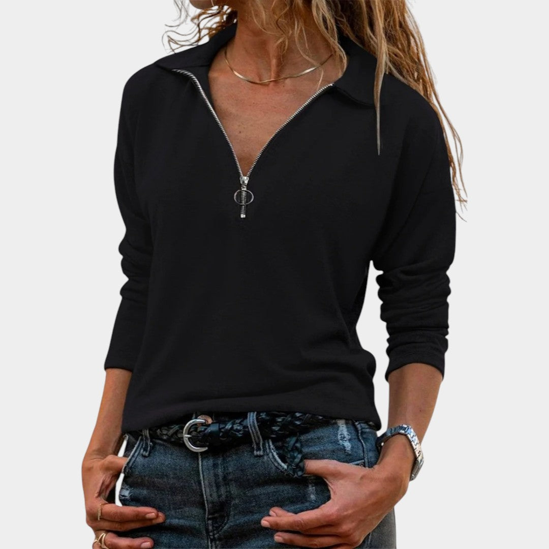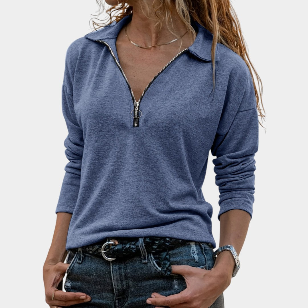 Eva – Dámský žebrovaný svetr s půlzipem