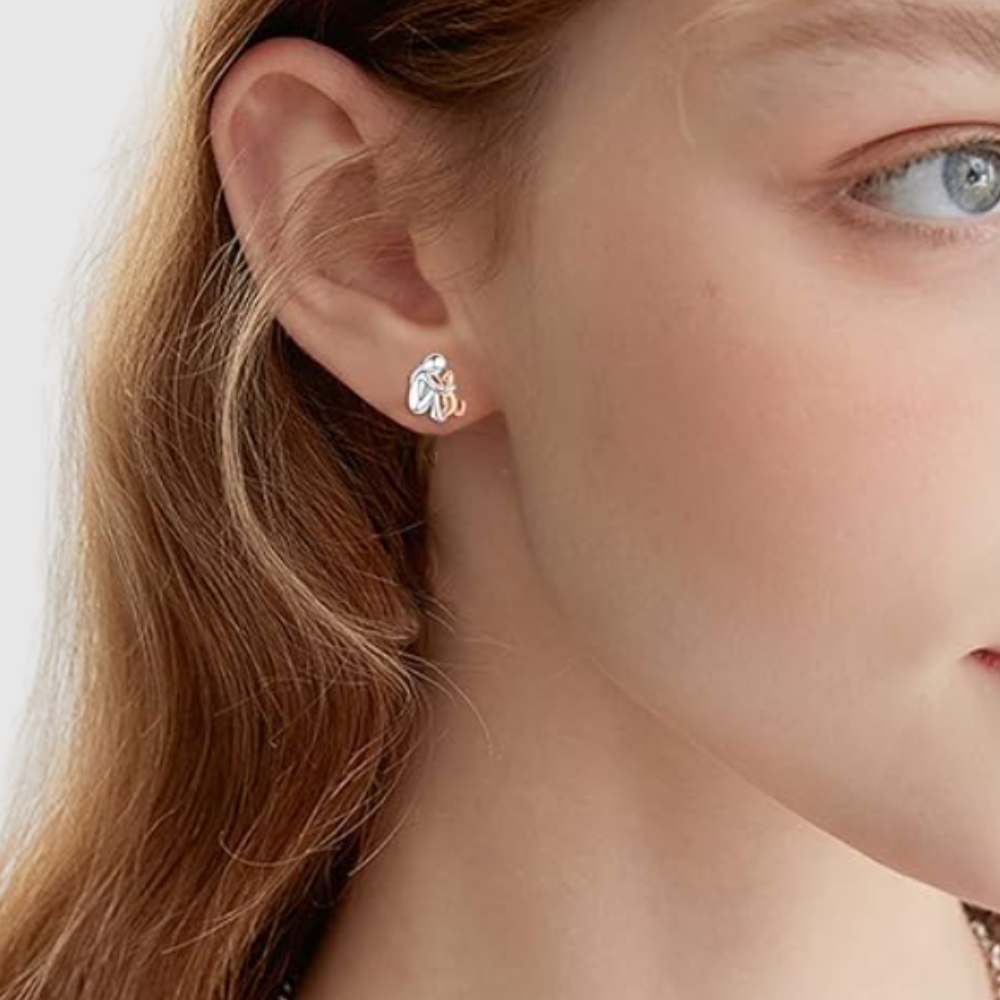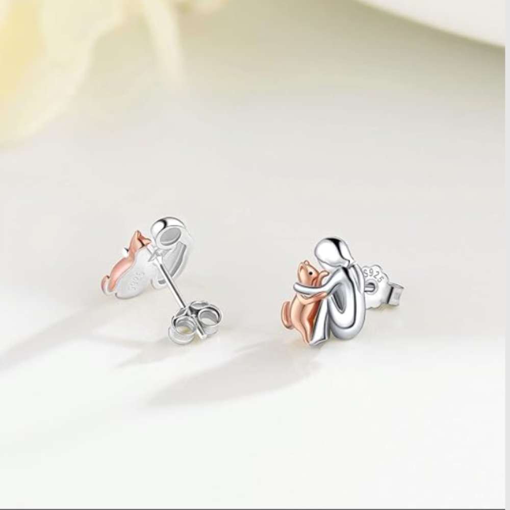 Tyto elegantní náušnice zachycují dojemný okamžik mezi dívkou a jejím kočičím společníkem. Nadčasový design je jemný, ale hluboce emotivní – ideální pro každého, kdo nosí svou kočku v srdci.