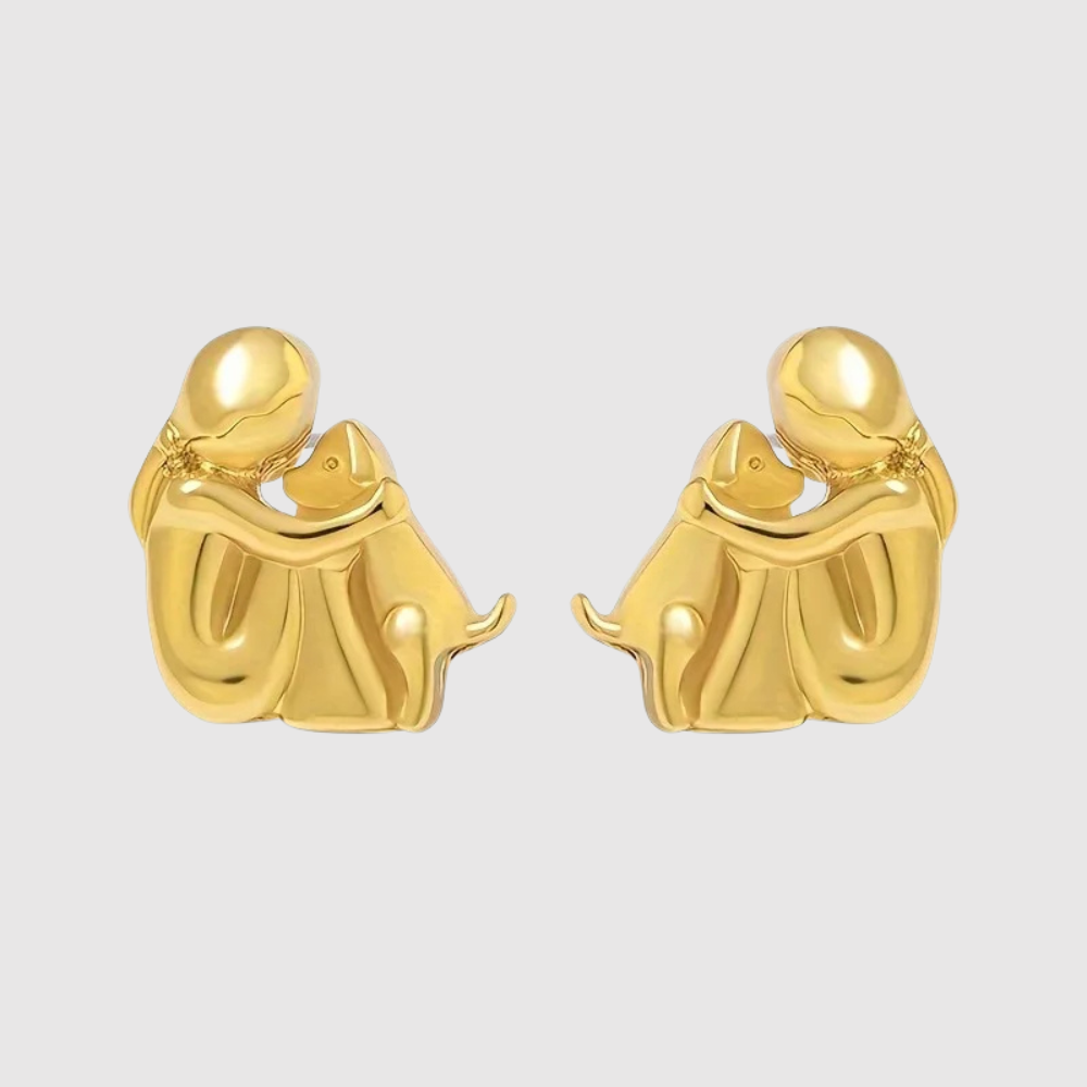 Tyto elegantní náušnice s motivem dívky objímající svého psa vyjadřují hluboké pouto, něhu a přátelství, které si zaslouží být nošeny každý den. Nadčasový design působí jemně, a přesto výrazně – ideální pro milovníky zvířat a krásných emocí.
