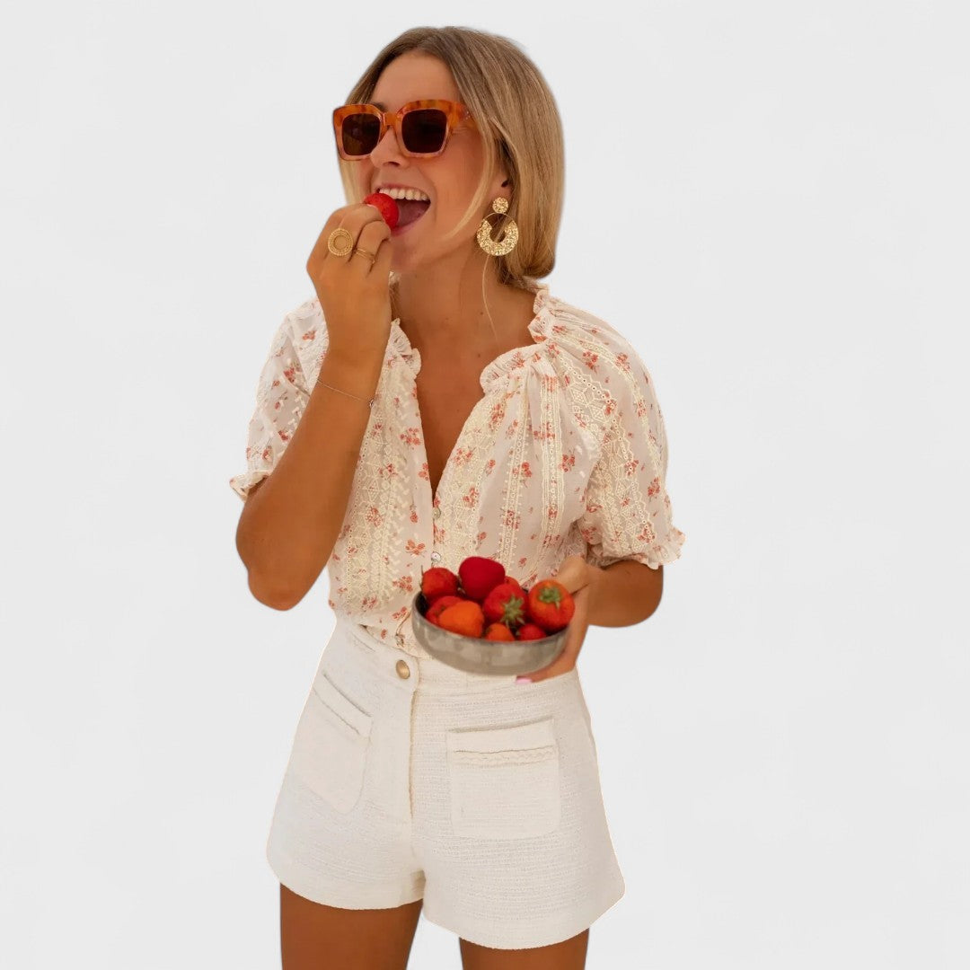 • Jemný květinový potisk – Přináší letní náladu a podtrhuje ženskou energii bez přehnané výraznosti